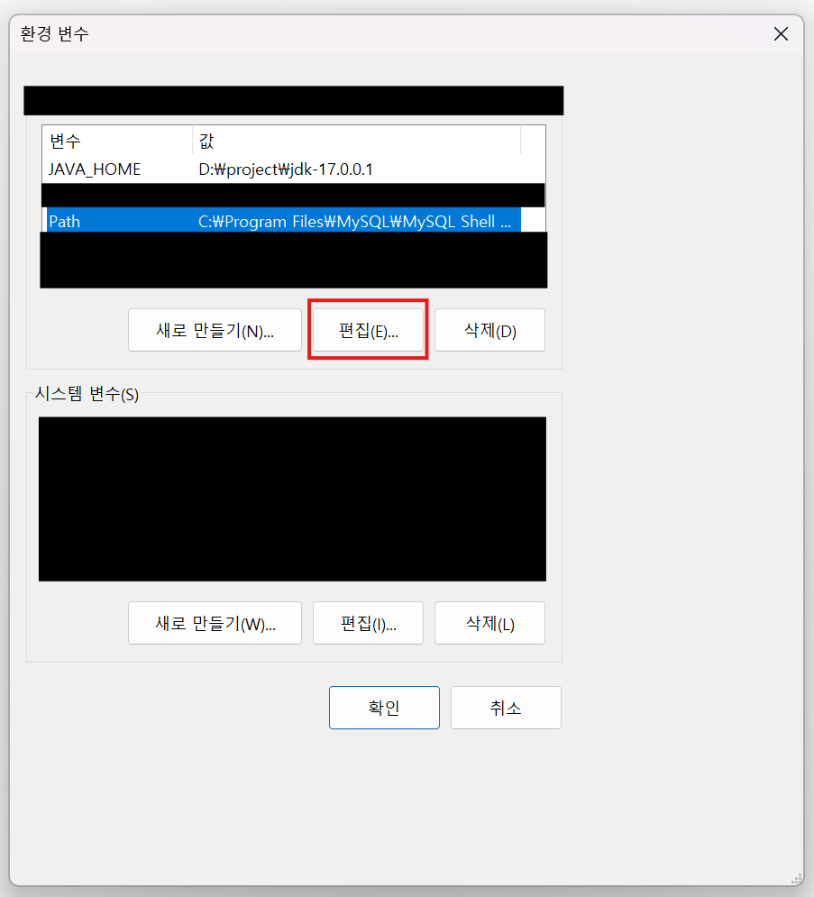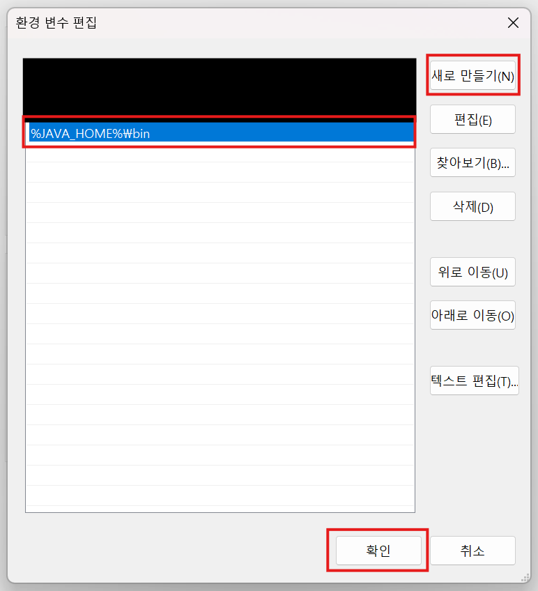 고급 시스템 설정 => 환경변수 => 새로 만들기