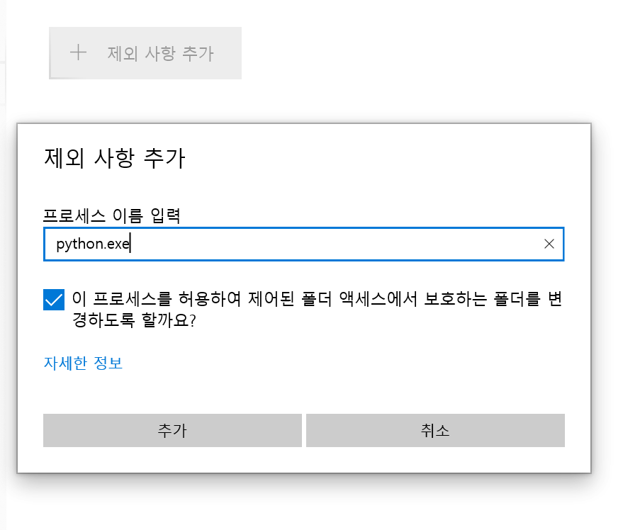 Python.exe를 보안에서 제외함(귀신같이 정상작동)